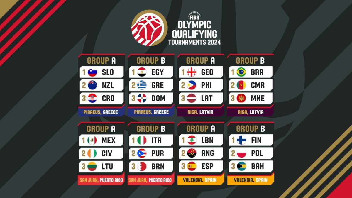 La FIBA ha confirmado a los anfitriones y los grupos donde participarán los equipos clasificados a los Torneos de Clasificación Olímpica FIBA masculinos 2024.